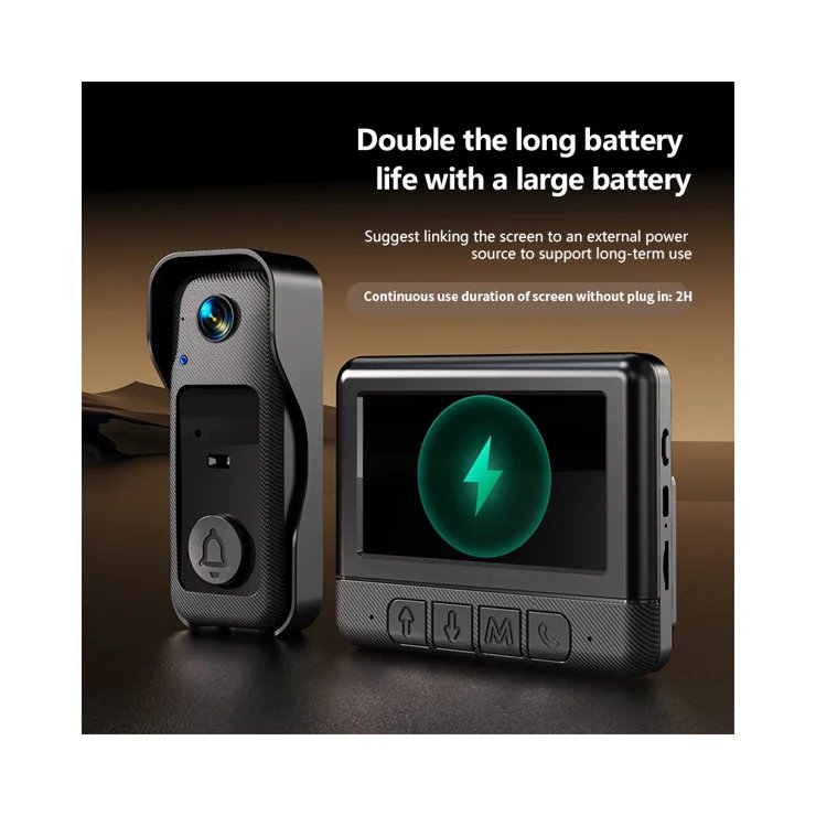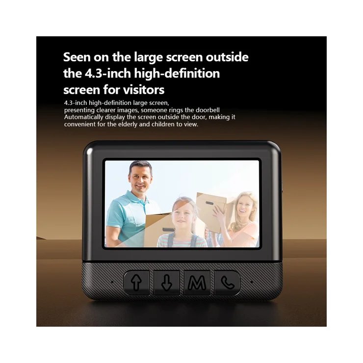 4.3″ HD color display, wide-angle lens with infrared night vision, two-way audio communication, wireless 2.4 GHz connectivity, motion detection with auto snapshot, rechargeable lithium battery, supports micro-SD up to 128 GB, and easy DIY installation.Provides real-time video monitoring, motion alerts, and two-way communication for enhanced home security.